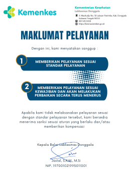 Balai Labkesmas Donggala dengan ini menyatakan sanggup memberikan pelayanan sesuai standar pelayanan dan memberikan pelayanan sesuai kewajiban dan akan melakukan perbaikan secara terus menerus. |